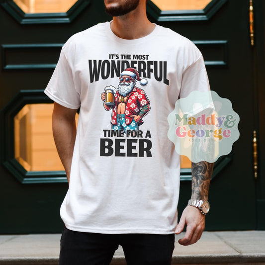 Funny Christmas Beer Shirt, Christmas Drinking Tshirts, Santa Drinking Tee, Xmas Gift For Beer Lovers, Most Wonderful Time for a Beer,