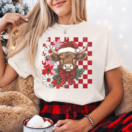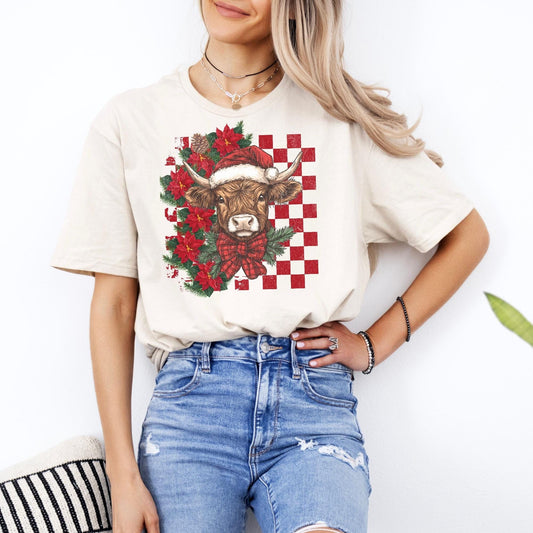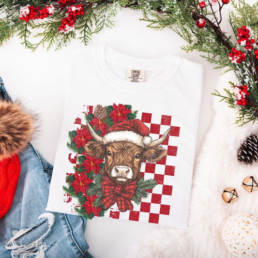 Highland Cow Christmas Comfort Colors Shirt, Vintage Merry Christmas TShirt, Western Christmas Outfit, Xmas Gift For Her, Coquette Cowgirl